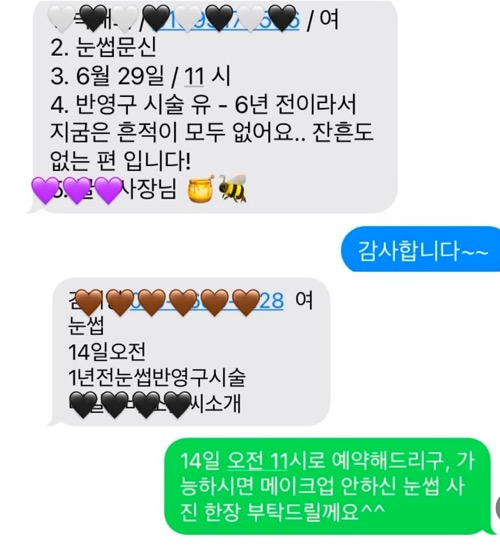 눈썹때문에 스트레스 받으시다가 지인분의 추천으로 와주셨다고 해요 :)